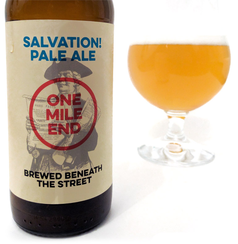 Salvation! Pale Ale from Tottenham based One Mile End sits a straw gold once poured into the glass. A small covering of froth lies across the top. The nose is freshly grated orange zest along with some soft grapefruit. It's a wonderfully harmonious aroma. Brewed with Maris Otter barley and a small amount of wheat, the latter creating a rich and fuller mouthfeel. This combined with the citrus fruits makes it feel breakfast-like. Sweet and fruity, the taste is primarily citrus with fresh grapefruit juice and the oil from orange skins prevailing. There's a touch of ripe apricot towards the back of the tongue. The citrus flavours of Salvation! Pale Ale relinquishes to give a dry, biscuity finish.